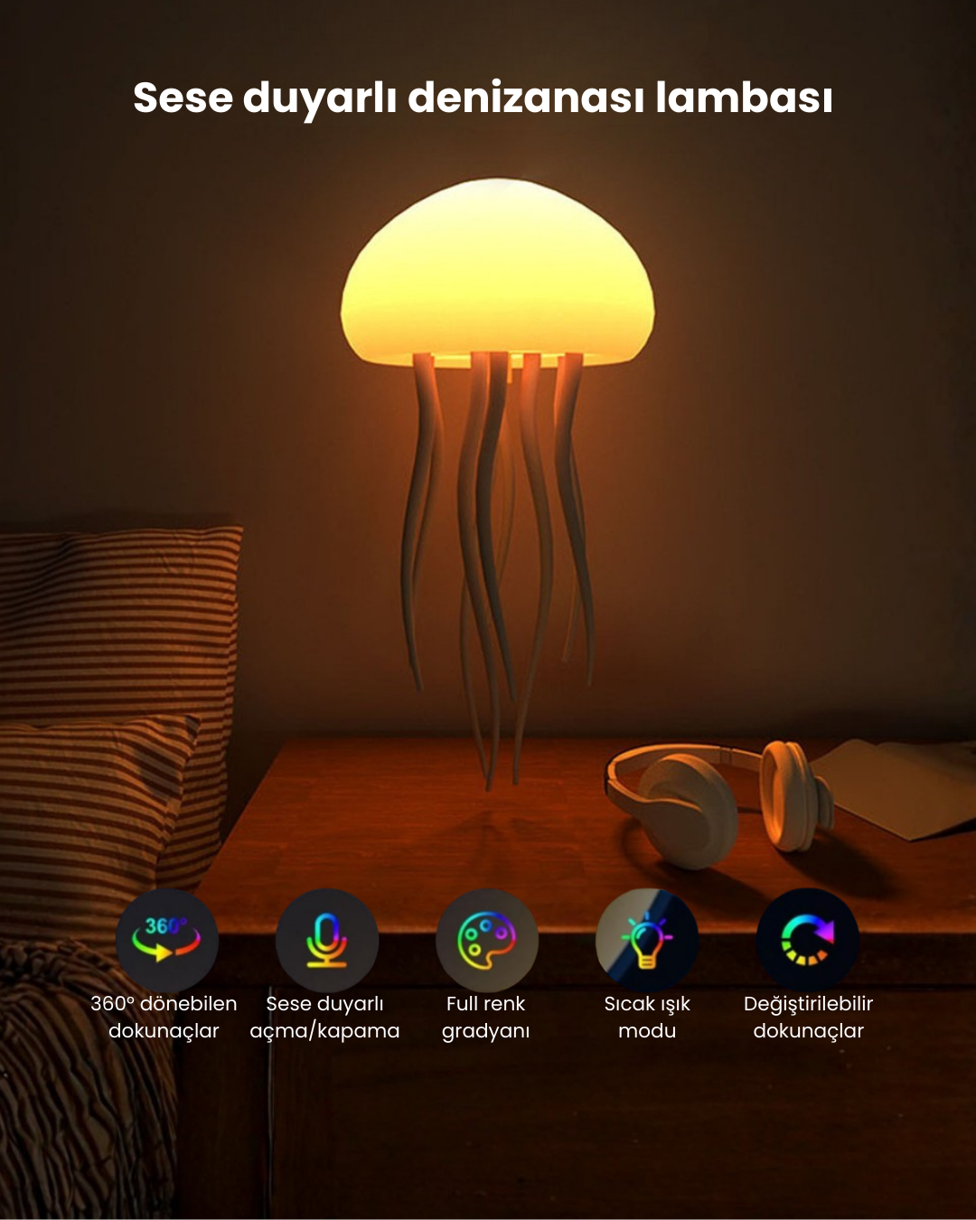 Harekete ve sese duyarlı sensörler sayesinde denizanası ışığını açarken bir buton aramanıza gerek yok.